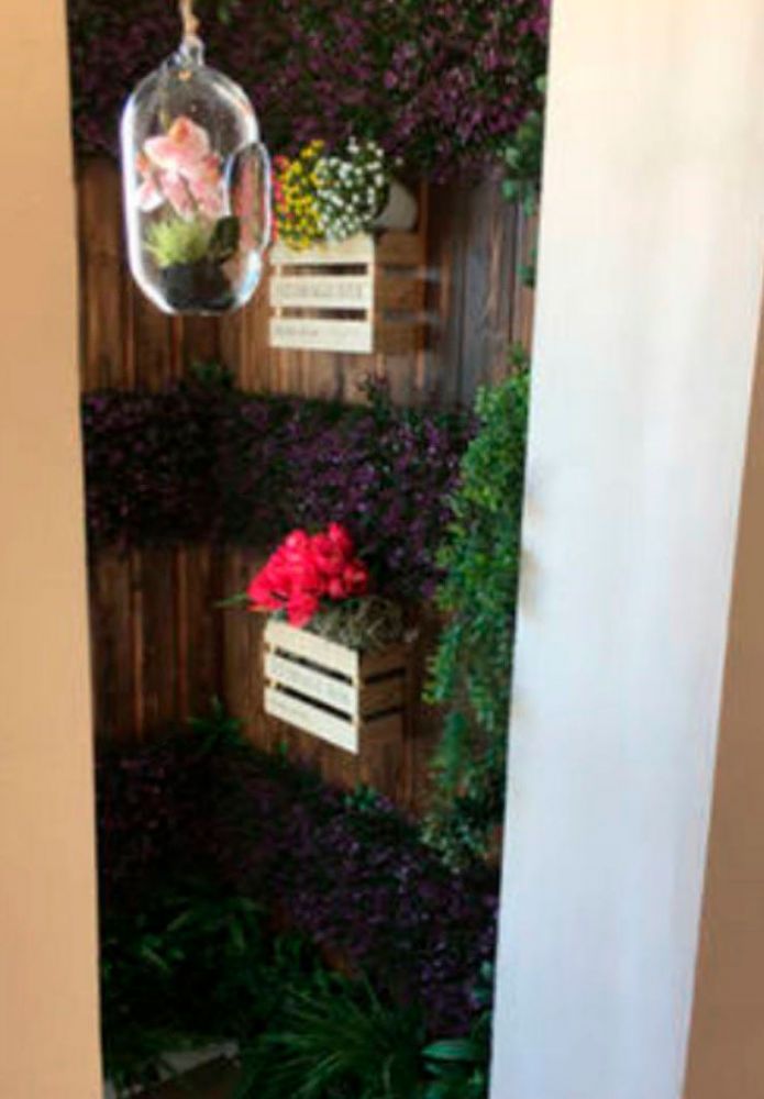 vestibulo elegante con mesa de cristal